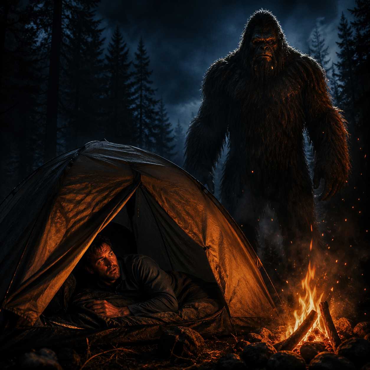 A food hang disturbed in a way that didn't match any bear behavior he'd ever seen. And then, on the fifth night, three of them surrounding his camp in the dark, with eyes that weren't reflecting light so much as generating it. One of them stepped out into the clearing and let him see it. That was enough.