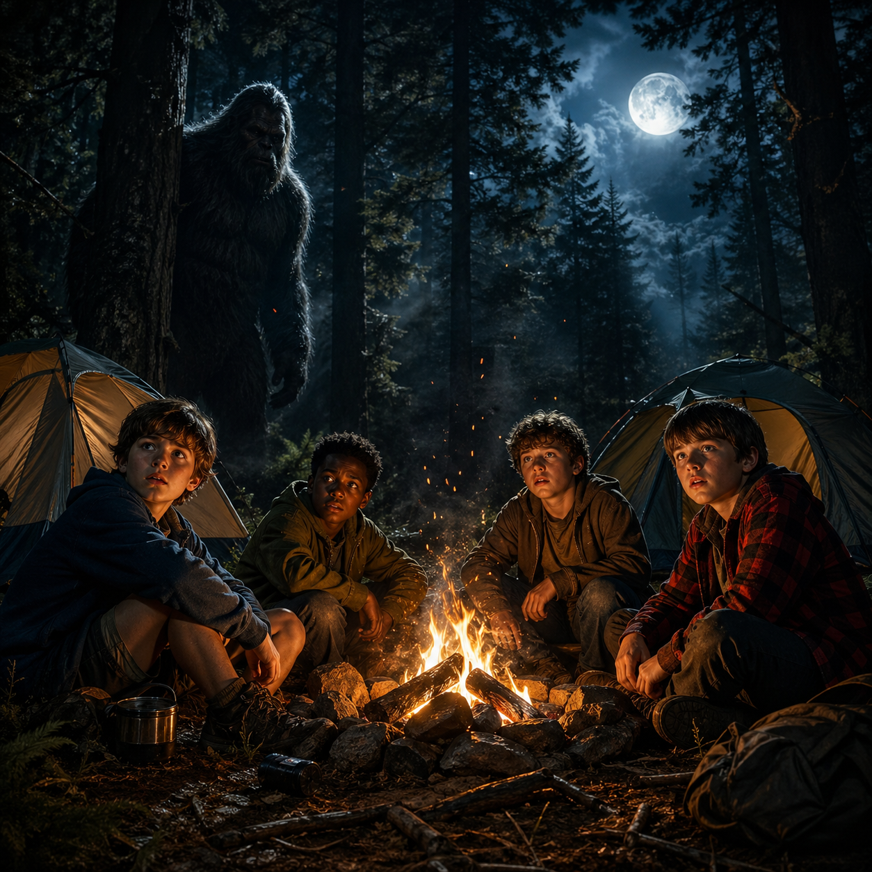 They were supposed to stay a week. They came home after three days, and they have never once sat down together and talked about why. What happened to those four boys over those three nights is the kind of thing that rearranges a person from the inside out. Wood knocks on the ridge. A voice in the trees that knew one of their names. A figure stepping out from behind a poplar twenty yards from the fire. And in the deepest hours of the third night, something heavy and patient running its hand across the top of their tent while all four of them sat inside in the dark, holding their breath.
